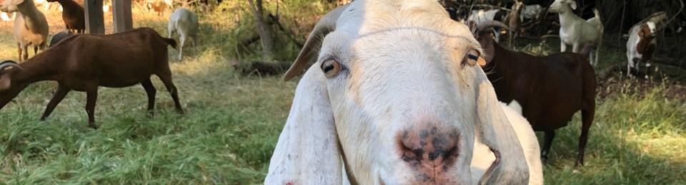 After creating a respectable pile of trash for County Parks to pickup, the crew adjourned to Camp Pollock for some beverages. No sooner had we settled down, then the goats decided to bust through their protective fencing and head in the direction of Northgate Boulevard, their Great Pyrenees guard dog leading the way.